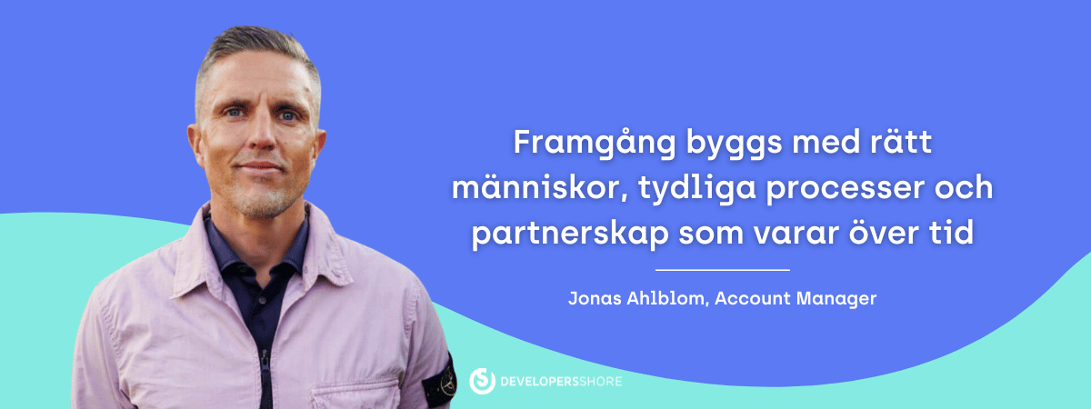 På Developers Shore tror vi på att leverera mer än bara utvecklare – vi skapar långsiktigt värde genom starka kundrelationer. För Jonas Ahlblom, Account Manager, handlar det inte bara om att tillhandahålla rätt tech-kompetens, utan om att se till att samarbetet med kunderna är strukturerat, transparent och fokuserat på verkliga resultat.